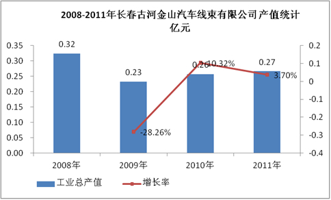 图表 72008-2011年长春古河金山汽车线束有限公司产值统计  亿元