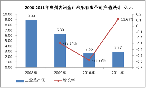 图表 82008-2011年惠州古河金山汽配有限公司产值统计   亿元