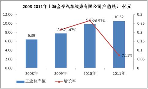 图表 12008-2011年上海金亭汽车线束有限公司产值统计 亿元