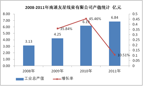 图表 32008-2011年南通友星线束有限公司产值统计  亿元