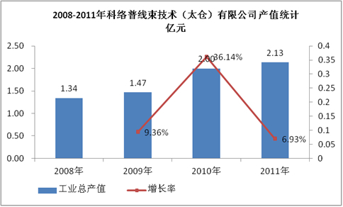 图表 72008-2011年科络普线束技术(太仓)有限公司产值统计  亿元