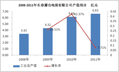 图表 132008-2011年长春藤仓电装有限公司产值统计 亿元