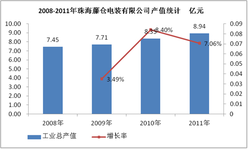 图表 112008-2011年珠海藤仓电装有限公司产值统计  亿元