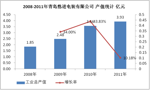 图表 142008-2011年青岛悠进电装有限公司产值统计    亿元