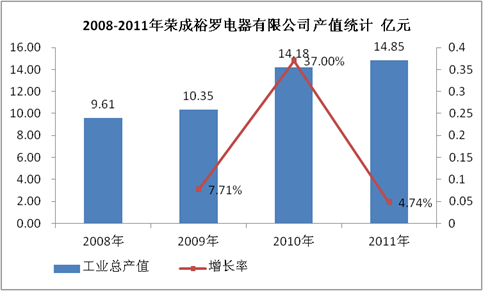 图表 212008-201年荣成裕罗电器有限公司产值统计    亿元